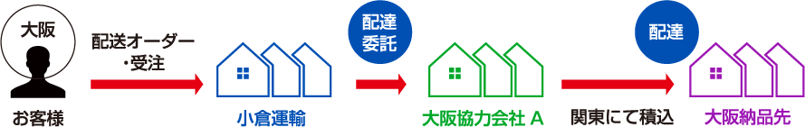 小倉運輸の配送ネットワークと物流拠点 ワンストップの物流サービスで安心と実績の全国輸送を実現 長距離配送のネットワーク 各地域の協力会社とパートナーシップを結び、東北、甲信越、関西、山陽エリアへの長距離輸送ネットワークも整備し、お客様の幅広いご要望にお応えしています。 例